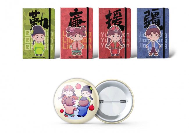 在疗养院活动中,团队将文创深度融入日常互动。定制活动手册以四位IP卡通形象为封面,内设浙疆非遗知识与民族团结金句。专属徽章以IP人物围绕为元素,参与者自发佩戴合影。
