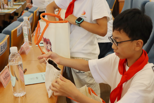 团队设置IP合影打卡点,参与人员可以自行领取免费赠送的文创集合袋。疗养人员可与“圆圆”“勤勤”等立牌合影,扫码获得带有IP形象与标语的电子照片,让文化认同在指尖传递。